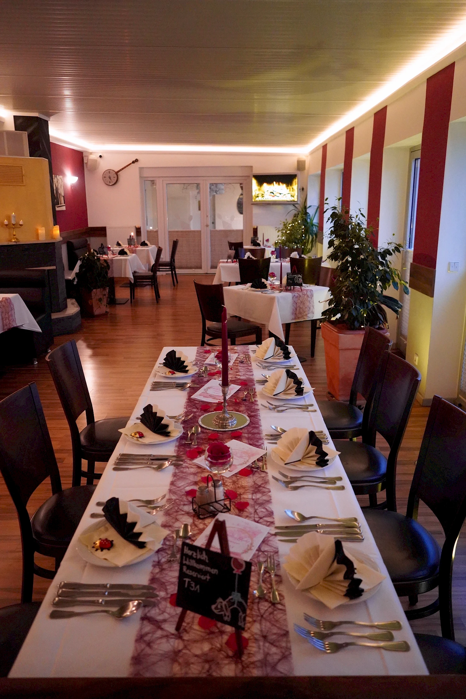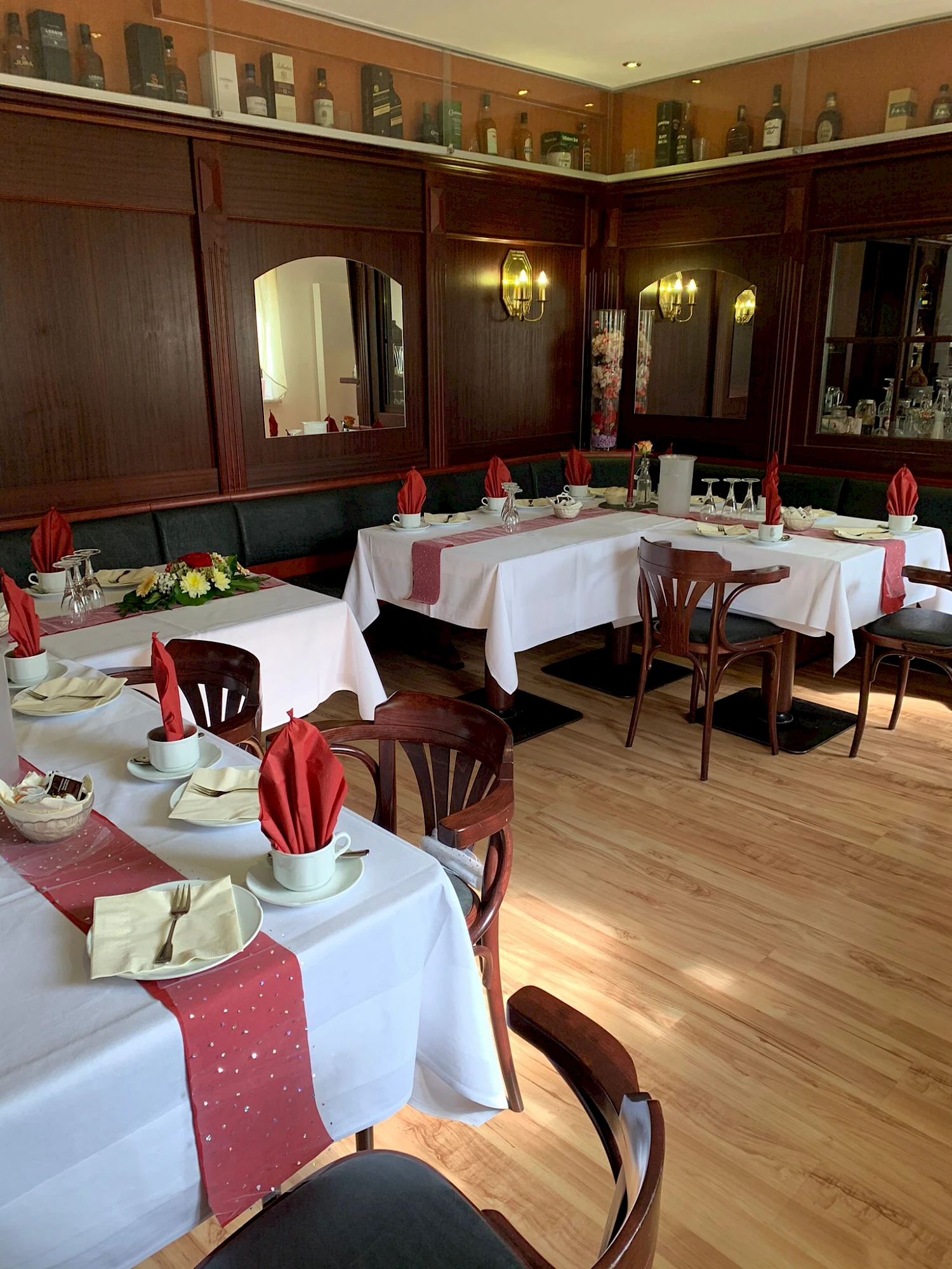 In unseren Räumlichkeiten bieten wir Platz für bis zum 150 Gäste, im Sommer für bis zu 200 Gäste, verteilt auf einen kleinen Gastraum, einen Wintergarten und einen Saal sowie einen großzügigen Freisitz.